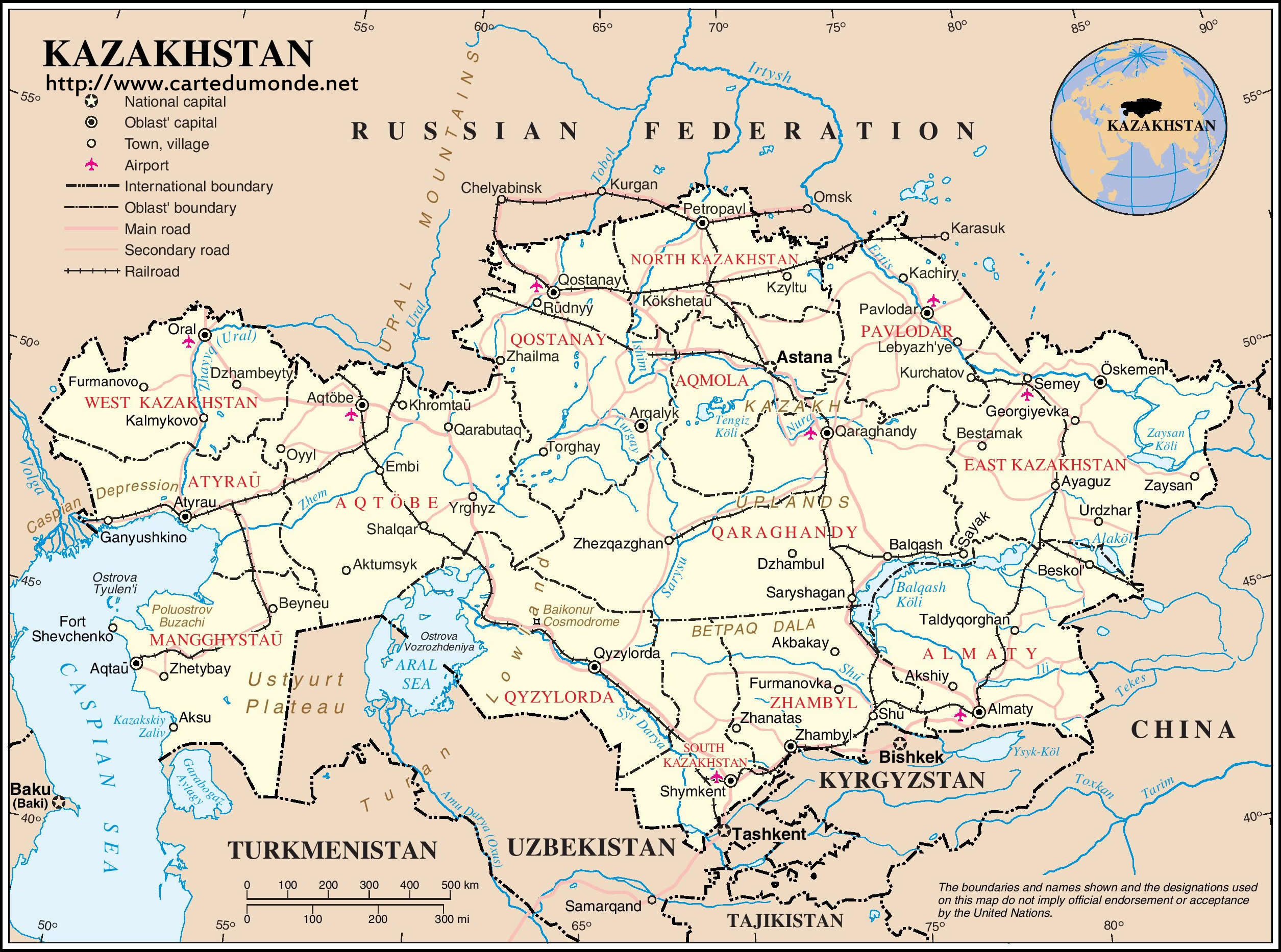 Mapa Kazachstan