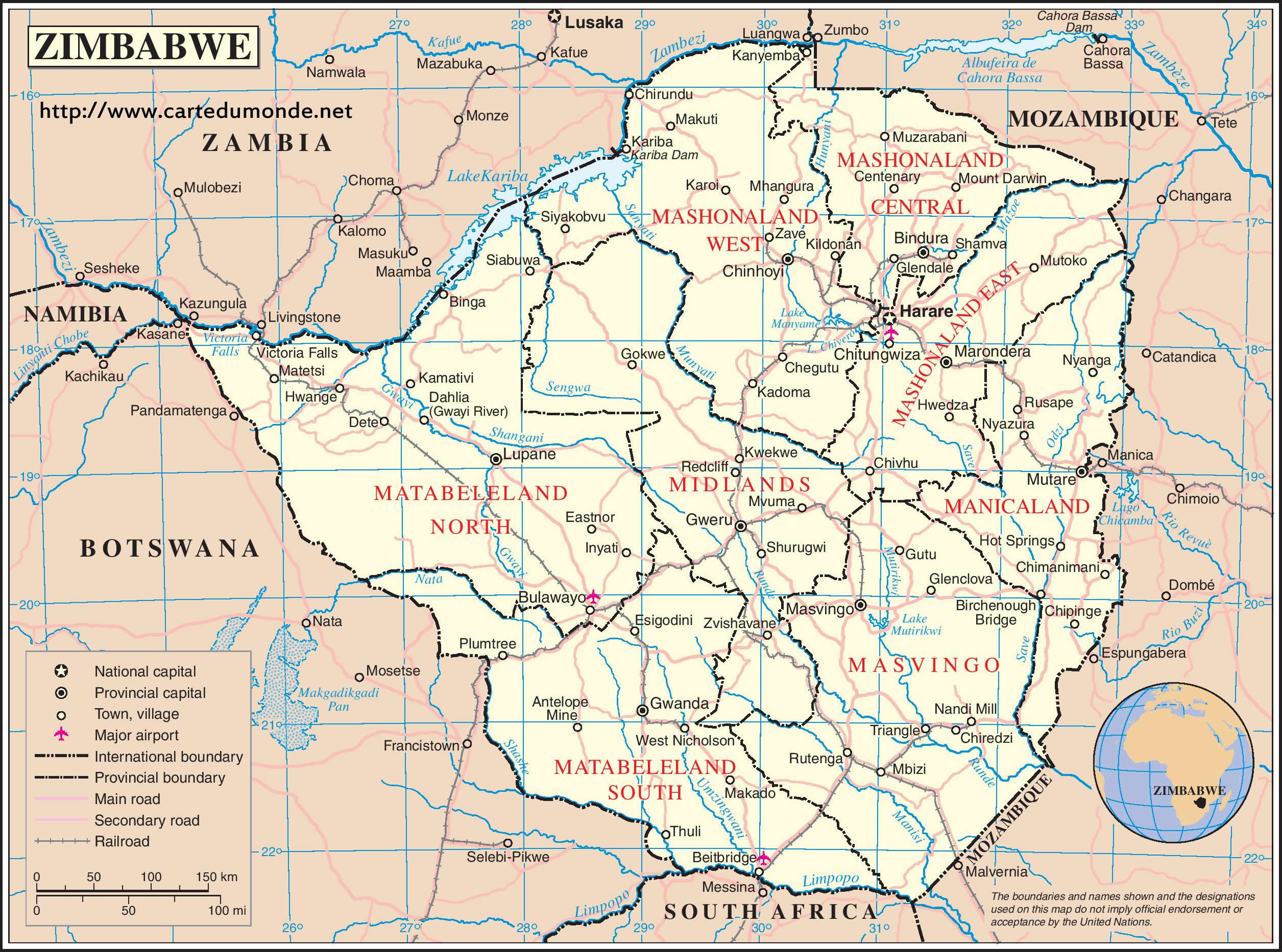 Mapa Zimbabwe